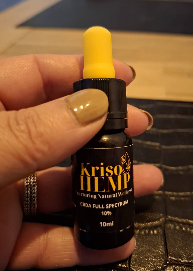 Door de natuurlijke stoffen in de olie , zoals CBDA en CBGA , blijf ik mezelf maar dan zonder de constante pijn en spanning die ik voorheen had.